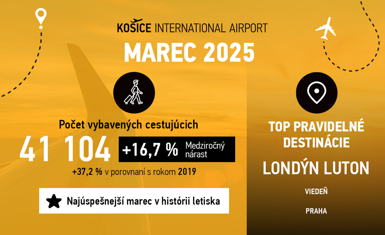 Po najúspešnejšom roku vo svojej histórii pokračuje letisko Košice v prekonávaní rekordov aj v roku 2025. Za prvý štvrťrok prešlo jeho bránami 118 253 cestujúcich, čo predstavuje medziročný nárast o 20,6 %. Takisto tohtoročný marec bol najúspešnejším v histórii letiska s 41 104 vybavenými cestujúcimi. To je  o 16,7 % viac ako v marci 2024.
