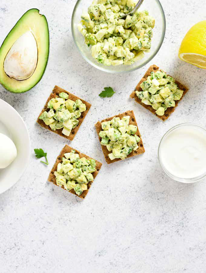 Vajcia uvarte natvrdo a nechajte vychladnúť, potom ich ošúpte a nakrájajte na malé kocky. Zrelé avokádo rozkrojte, vyberte kôstku a dužinu nakrájajte na malé kocky alebo roztlačte vidličkou. V miske zmiešajte nakrájané vajcia, avokádo, majonézu a kyslú smotanu. Pridajte soľ, čierne korenie, sušený kôpor, štipku mletej rasce a citrónovú šťavu. Na záver pridajte nasekaný čerstvý koriander. Šalát je vhodný ako ľahké jedlo, príloha k mäsu alebo na čerstvom chlebe.