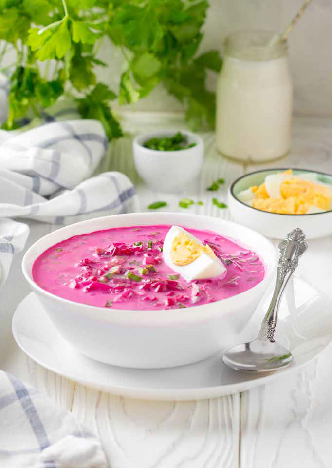Keď je cvikla studená, pridajte k nej kefír, jogurt, uhorku, reďkovky a nasekané bylinky. Všetko dobre premiešajte. Dochuťte soľou, korením, citrónovou šťavou a jablčným octom. Hrniec prikryte a nechajte polievku odležať aspoň tri hodiny v chladničke – čím dlhšie, tým lepšie. Podávajte s natvrdo uvareným vajcom.