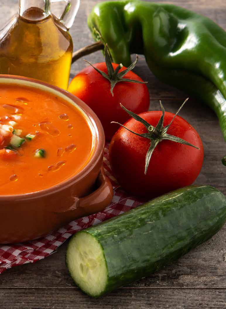 Gazpacho pochádza z južného Španielska, konkrétne z regiónu Andalúzia, kde je tradičnou letnou studenou polievkou. Recepty na gazpacho sa odovzdávajú z generácie na generáciu, pričom každá rodina má vlastné tajné prísady alebo pomer surovín.