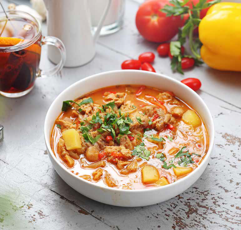 Hlivu a zemiaky očistite a nakrájajte na menšie kúsky. Cibuľu nakrájajte nadrobno a cesnak nastrúhajte alebo pretlačte