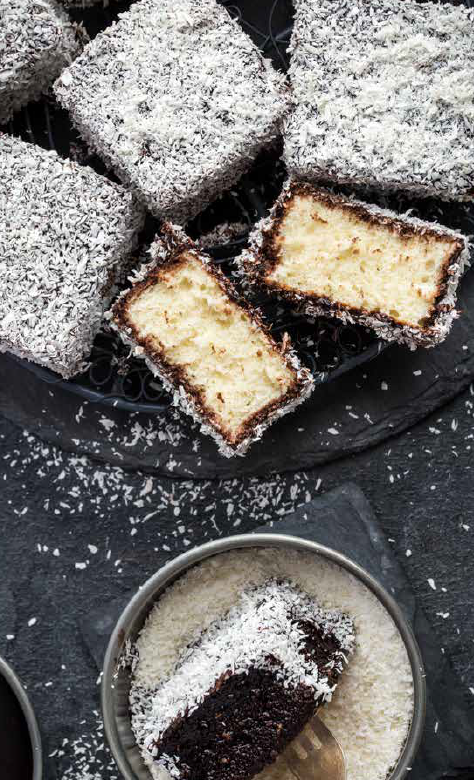 Medzitým si pripravte čokoládovú polevu – maslo rozpustite na miernom ohni, pridajte čokoládu, práškový cukor, kakao, rum a mlieko a krátko povarte, kým hmota mierne nezhustne. Vychladnutý korpus nakrájajte na menšie kúsky. Každý kúsok namočte do teplej čokoládovej zmesi a hneď obaľte v kokose. Nechajte polevu stuhnúť a servírujte.
