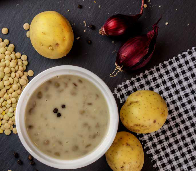 Preberte šošovicu a dôkladne ju opláchnite pod tečúcou vodou, aby ste odstránili nečistoty. Následne ju dajte do hrnca, zalejte vodou, pridajte bobkový list, čierne korenie, nové korenie a soľ. Varte na strednom ohni. Keď je šošovica takmer mäkká, pridajte očistené zemiaky nakrájané na malé kocky a varte, kým nezmäknú.