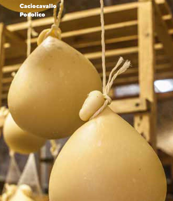 Caciocavallo v preklade znamená „syr na koni“ a  názov odkazuje na spôsob zrenia. Bochníky v tvare sĺz sa previažu šnúrkou a prevesia cez drevené brvno, presne ako keď cez koňa prehodíte sedlové brašny. Takto levitujú vo vzduchu, kým nedozrejú k dokonalosti.