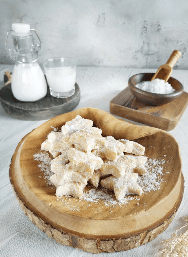 Rúru predhrejte na 180 °C. Cesto vyvaľkajte na približne 0,5 – 1 cm hrúbku a vykrajujte požadované tvary podľa toho, aké máte formičky. Koláčiky by mali byť malinké, keďže cesto je krehké.. Pečte koláče približne 5–8 minút. Pozor, koláče nesmú zhnednúť, mali by zostať svetlé. Po vychladnutí koláče obalte v cukre podľa chuti.