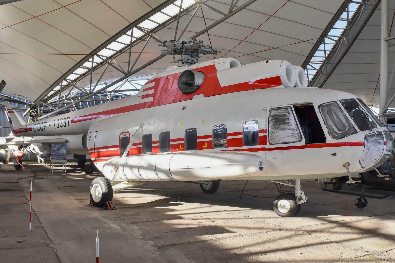 Vrtuľník Mi-8P(S), pričom písmená P(S) znamenajú Pasažiersky (Salónny) s továrenským číslom 2839 a sériovým číslom 28-39 opustil montážnu halu výrobného závodu Miľ v Kazani 10. apríla 1972. Jeho životnosť stanovená na 15 rokov bola s dvomi generálnymi opravami predĺžená o 2 x 8 rokov. Vrtuľník mohol v odhlučnenej kabíne dlhej 6,36 m, širokej 2,34 m a vysokej 1,80 m viezť 9 až 11 osôb a bol vybavený toaletou. K 25. januáru 1973 dostal evidenčné označenie CCCP-13337 a bol pridelený všezväzovej organizácii DOSAAF (Vsesojuznoje dobrovoľnoje obščestvo sodejstvija armii, aviacii i flotu), ktorá sa stala vzorom pre podobnú čs. organizáciu Zväzarm.
