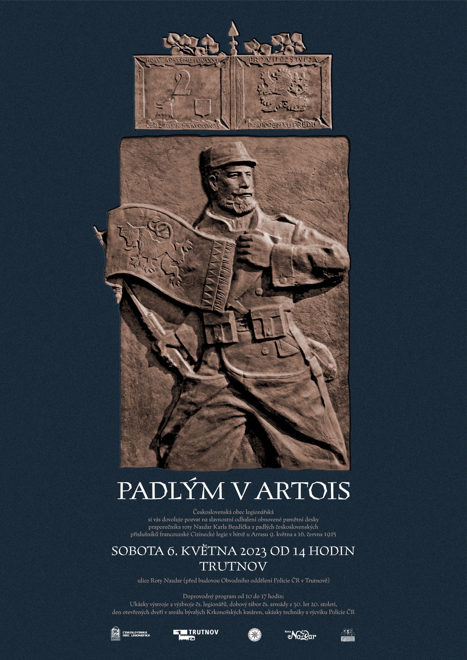 Slavnostní odhalení obnoveného památníku proběhne v Trutnově v sobotu 6. května 2023 od 14.00 hodin za účasti čestných hostů, stejnokrojovaných účastníků a za hudebního doprovodu Koletovy hornické hudby. Památník bude umístěn před budovou Obvodního oddělení Policie ČR v ulici Roty Nazdar. Od 10.00 do 17.00 hodin bude připraven doprovodný program tvořený dobovými tábory roty Nazdar a Hraničářského praporu 2 „Roty Nazdar“ s výzbrojí a výstrojí. V 10.30 a v 15.00 hodin se uskuteční hodinové bloky ukázek vojenského výcviku a výzbroje legionářů z první světové války a trutnovských hraničářů z doby první republiky, ukázky zásahu Policie ČR a ukázky současné policejní techniky.