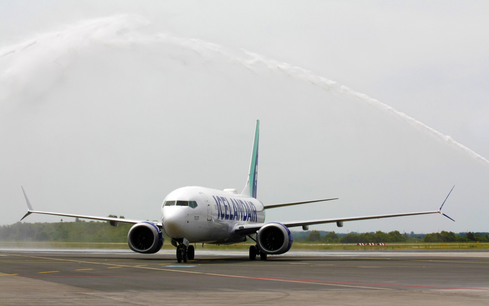 Na inauguračním letu do Prahy se jako první MAX Icelandairu představil Boeing 737-8 poznávací značky TF-ICR, jenž byl při pojíždění k Terminálu 2 přivítán tradiční vodní slavobránou.