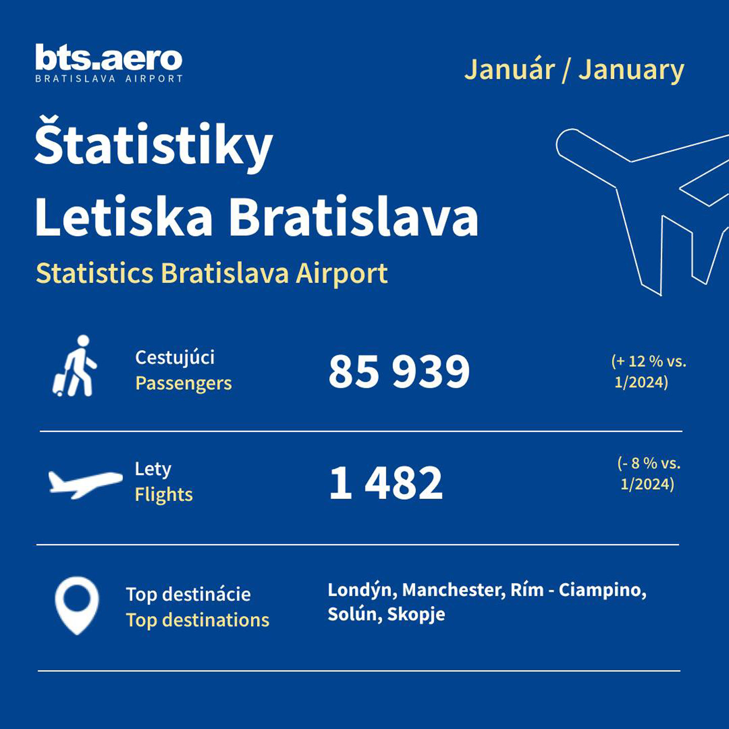 „Teší nás, že sa rok 2025 začal na bratislavskom letisku rastom počtu cestujúcich. Dosiahli sme najvyšší januárový výsledok počtu cestujúcich od začiatku pandémie, teda za posledných päť rokov,“ zhodnotil generálny riaditeľ a predseda predstavenstva Letiska M. R. Štefánika Dušan Novota.