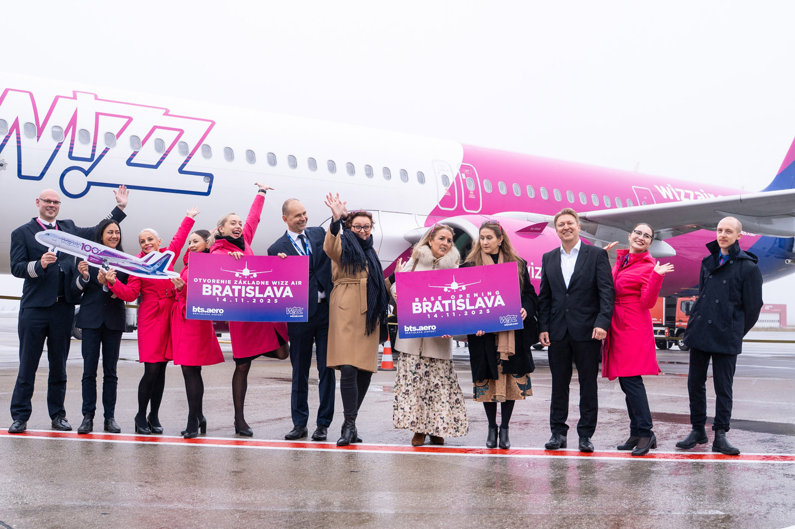 Základňu v Bratislave dnes otvoril v odletovej hale letiska výkonný riaditeľ Wizz Air Hungary Roland Tischner spolu s riaditeľom Letiska M. R. Štefánika Dušanom Novotom, zástupkyňou veľvyslanectva Maďarska – obchodnou a ekonomickou tajomníčkou Patríciou Marity, s veľvyslankyňou Španielska na Slovensku J.E. Sofíe Ruiz del Árbol Moro a s predsedníčkou predstavenstva turistickej organizácie Bratislava Tourist Board Ninou Erneker. Zároveň hostia vítali v nástupnej bráne prvých cestujúcich odlietajúcich s Wizz Air do španielskej Barcelony.