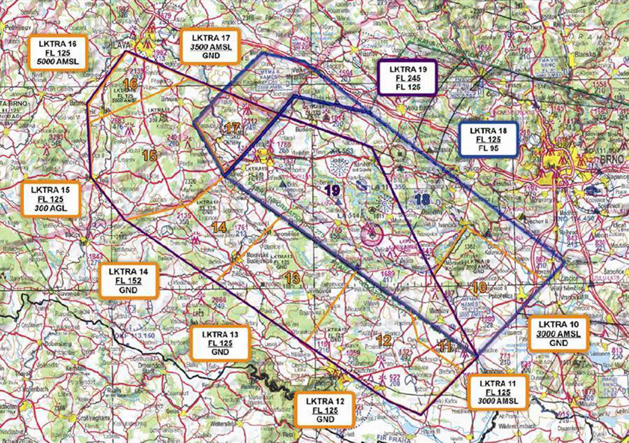 Vzdušný prostor České republiky je stejně jako u jiných evropských států rozdělen mezi jednotlivé uživatele (armáda, soukromé subjekty, aerokluby a další). Naše základna si tedy nemůže svévolně vybírat prostory pro výcvik. Prostory pro náš výcvik nám byly přiděleny na základě dohody Úřadu pro civilní letectví s Odbor dohledu nad vojenským letectvím.