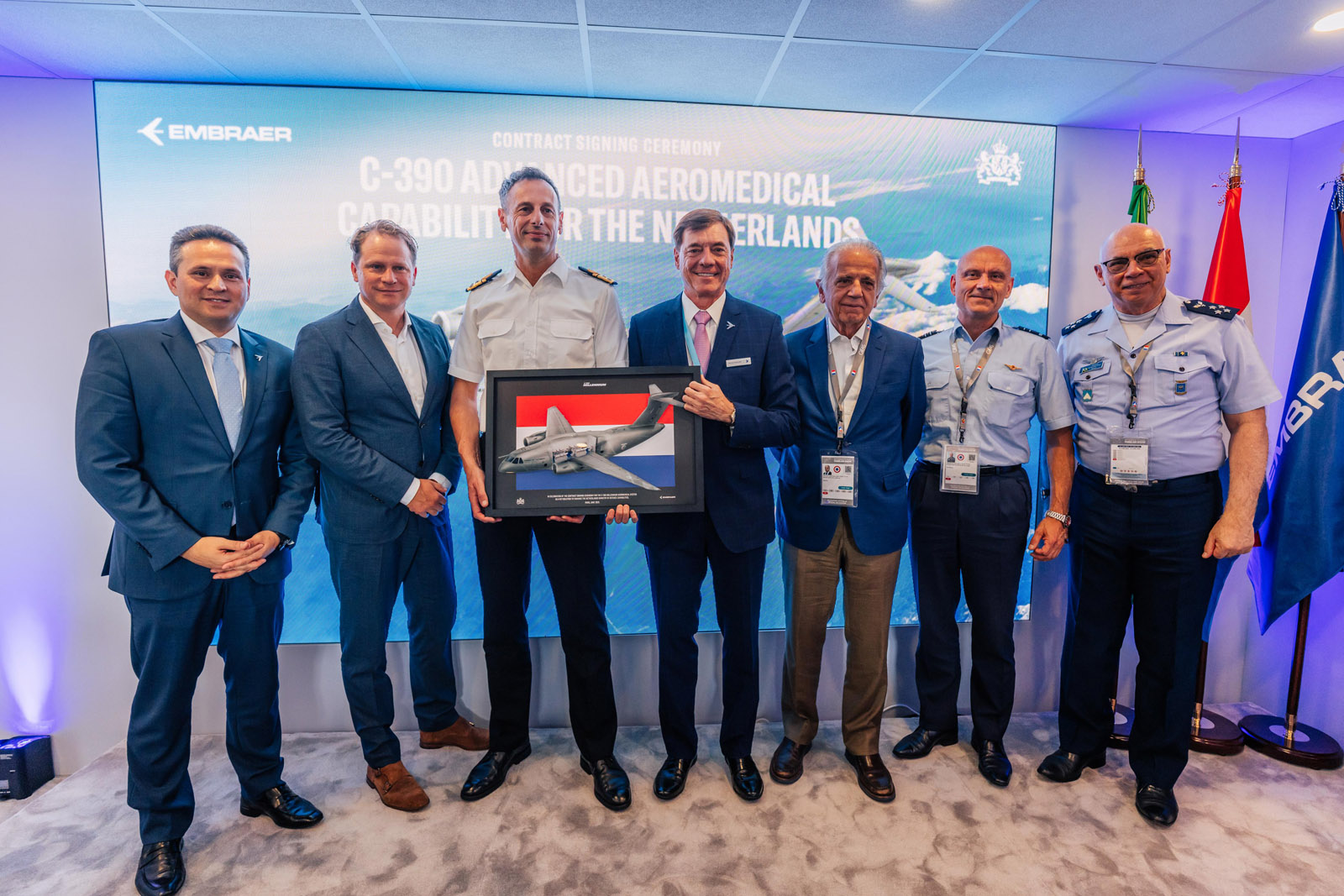 Společnost Embraer podepsala s Nizozemským královstvím smlouvu na dodávku inovativního aeromobilního evakuačního systému pro víceúčelová transportní letadla C-390 Millennium nizozemského letectva. Dohoda, uzavřená během pařížského aerosalonu, zahrnuje jednu pevnou objednávku a sedm dalších opcí.