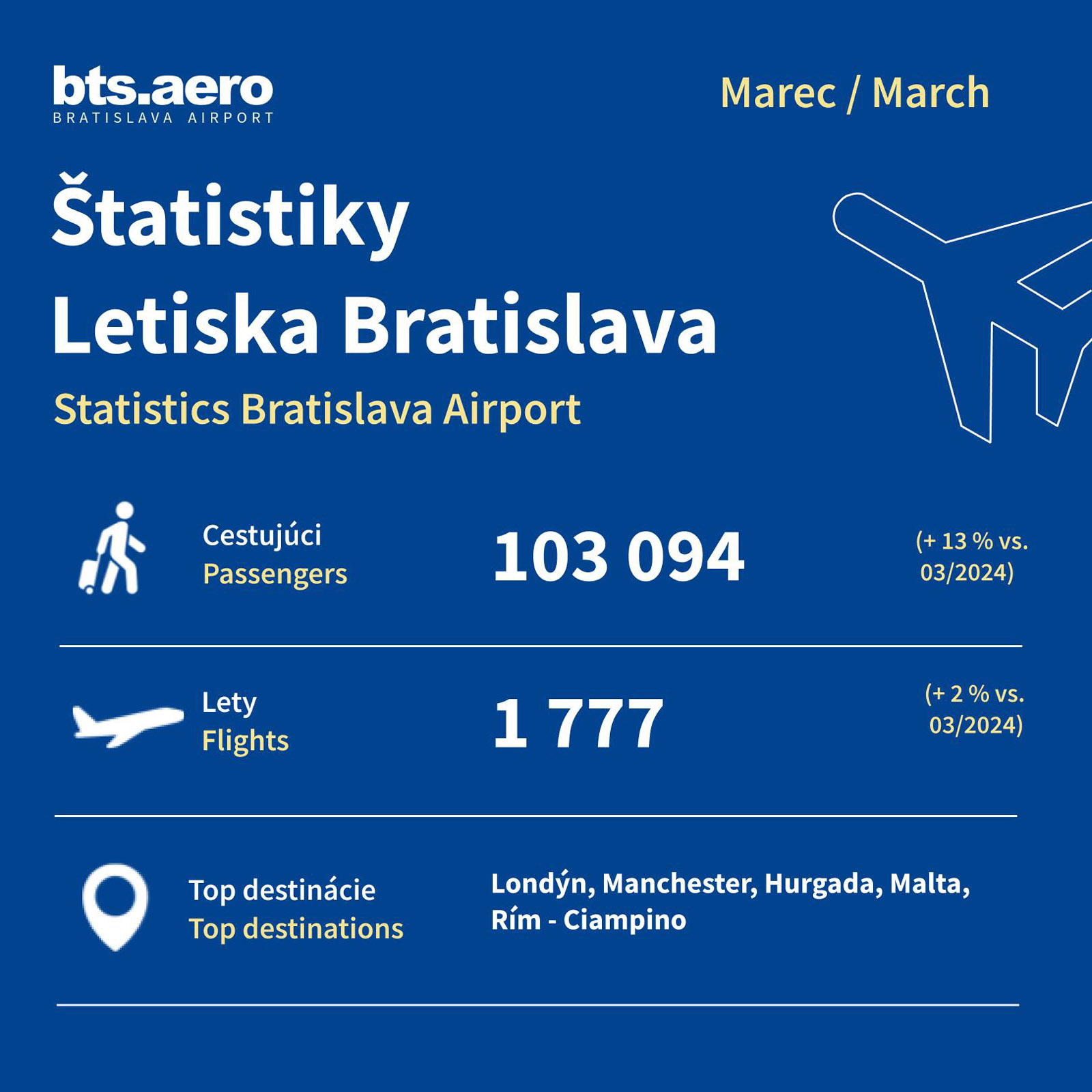 Rast prevádzkových výsledkov zaznamenalo letisko v Bratislave aj v samotnom mesiaci marec, keď odbavilo 103 094 cestujúcich. „Po prvý raz od obdobia pandémie Covid-19 sme v treťom mesiaci roka presiahli hranicu 100-tisíc cestujúcich a zaznamenali sme v porovnaní s vlaňajším marcom rast ešte o 13 percent cestujúcich,“ vysvetlil Dušan Novota. „Prispela k tomu napríklad aj nepravidelná charterová doprava spustením dovolenkových letov do Egypta,“ uzavrel generálny riaditeľ.