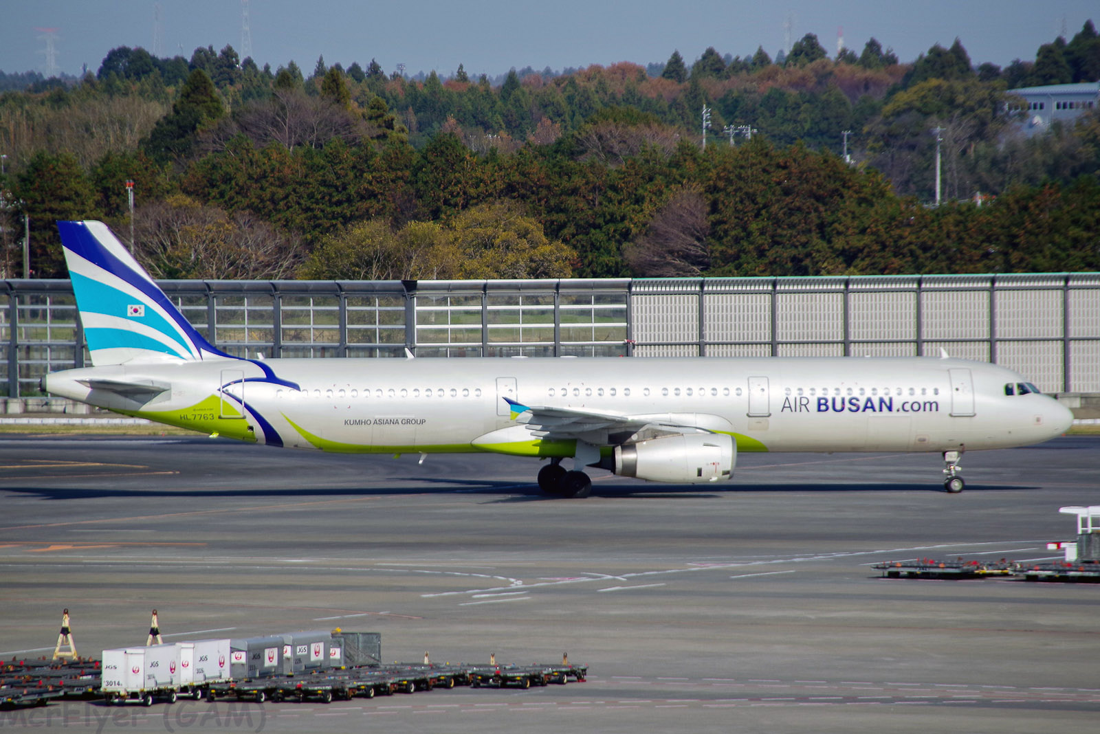 Shořelým strojem je Airbus A320-231 vyrobený pod číslem 3297 a jako D-AVZR zalétaný v Hamburku 30. října 2007. Jeho prvním provozovatelem, se stejnou poznávací značkou, jakou nosil i Air Busan, byl dopravce Asiana Airlines, který jeho služeb využíval od 13. listopadu 2007 v konfiguraci s 12 sedadly v obchodní a 165 v ekonomické třídě. Stroj poháněný motory IAE V2533-A5 měl na svém kontě již jednu nehodu, k níž došlo na den přesně před 15 léty a 3 měsíci na letišti v Ósace-Kansai, kde při přistávacím manévru škrtnul ocasní částí o dráhu. Ve flotile Air Busan se tento stroj objevil 1. června 2017 a provozován byl se 195 v ekonomické třídě.