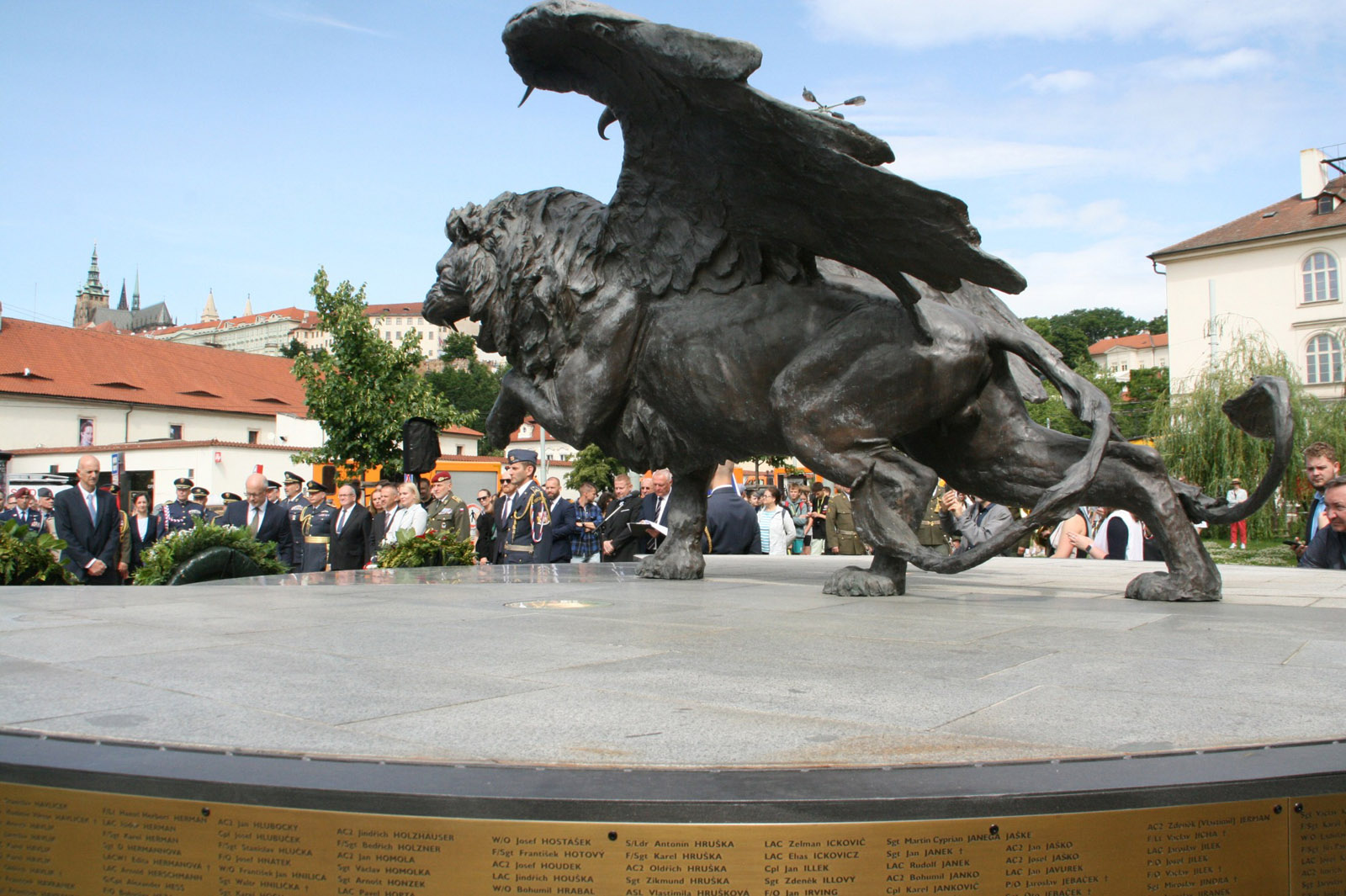 Památník, od britského sochaře Colina Spoffortha, v podobě okřídleného lva je převážně darem britské komunity žijící v České republice a na Slovensku, která na dílo vybrala zhruba tři miliony korun. Lev symbolizuje odvahu více než dvou a půl tisíc československých letců RAF, z nichž přišlo 493 v bojích o život.