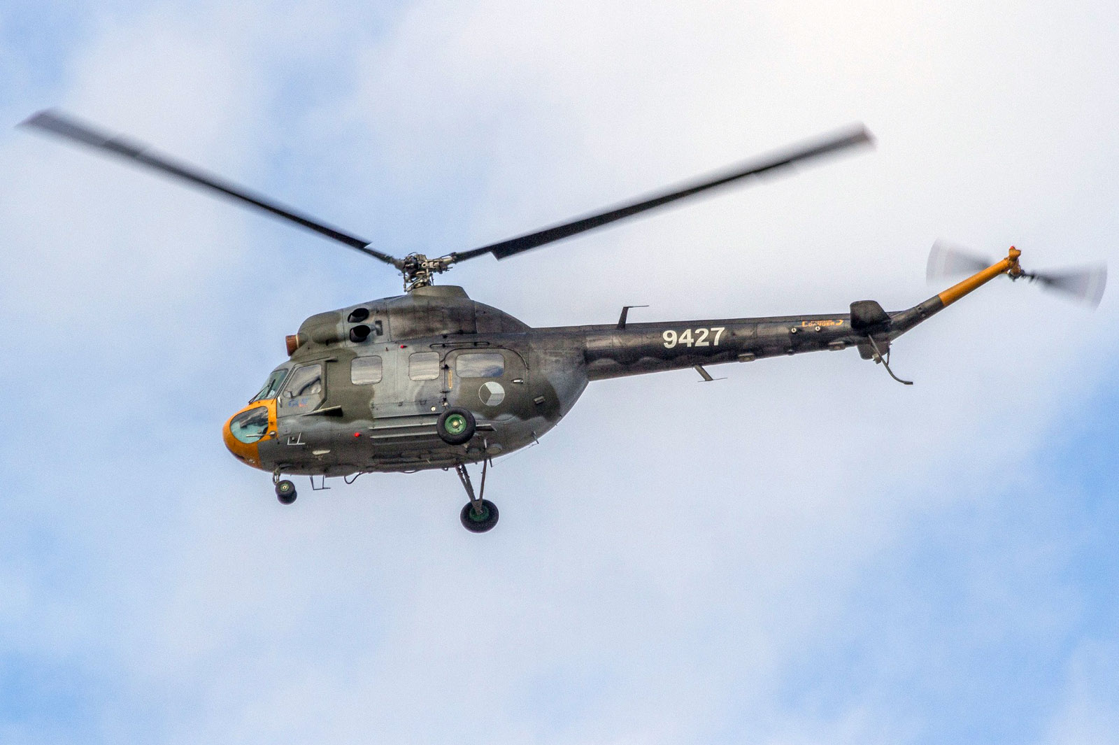 Vrtulník Mi-2 pozn. zn. 9427 vyrobili v říjnu 1985 a postupně létal v Havlíčkově Brodě, Prostějově, Přerově a Pardubicích. Jeho letová derniéra proběhla 30. srpna 2016. Tato „dvojka“ eviduje bezmála 9000 přistání a nálet 3200 letových hodin.